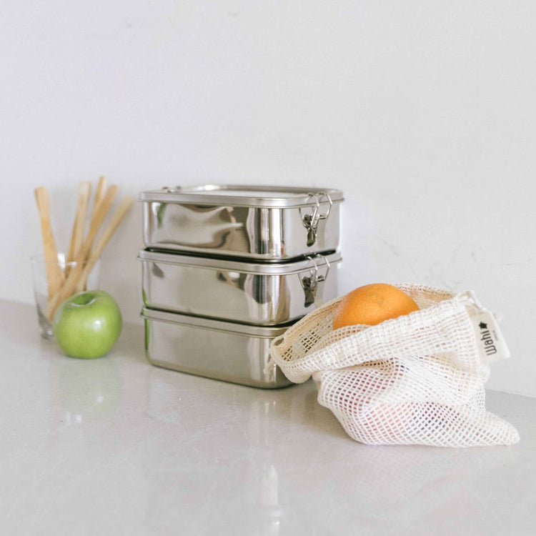 Made of 304 food grade stainless steel, our Wahi bento box is sure to last a lifetime. The built in silicone seal and side latches make this box virtually leak-proof. Easy to clean and stain proof. Great for the beach, a picnic or your favorite take out! This "lunchbox" is a great, ocean friendly way to reduce waste. No more single use take out containers or bags!